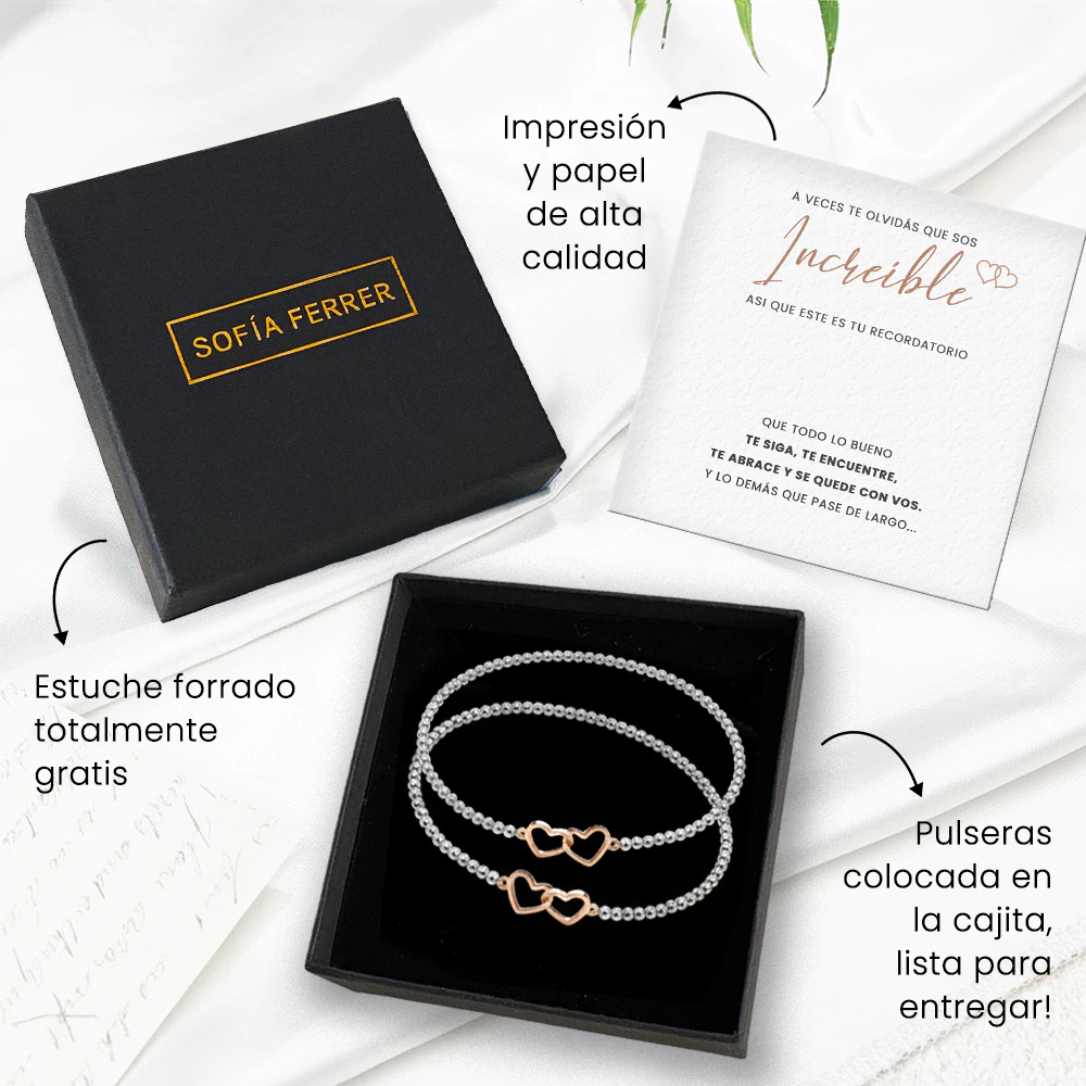 La pulsera de corazones entrelazados representa un vínculo inquebrantable e infinito entre almas y es un símbolo del amor por siempre.